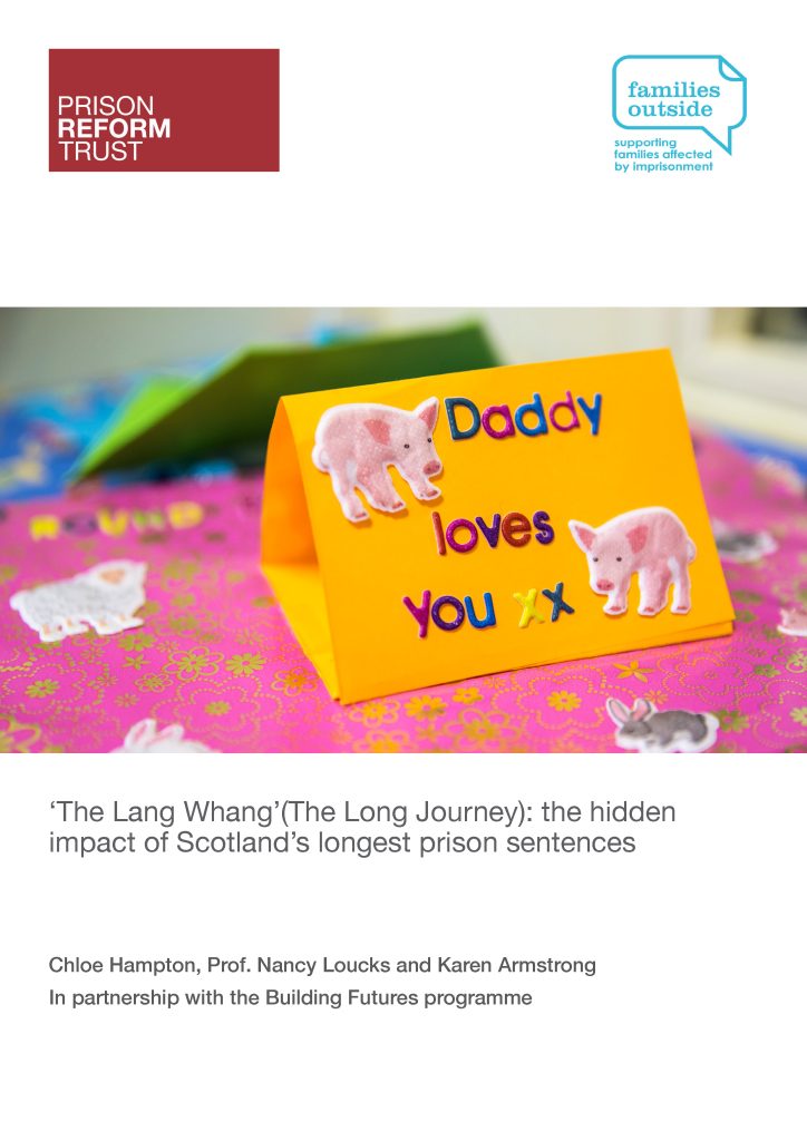 This report, conducted in partnership with Families Outside and authored by Chloe Hampton, Professor Nancy Loucks and Karen Armstrong explores the lived experiences of partners and families affected by very long-term prison sentences in Scotland. It calls for more tailored support, improved consistency across the prison system and better implementation of the Scottish Prison Service Family Strategy.